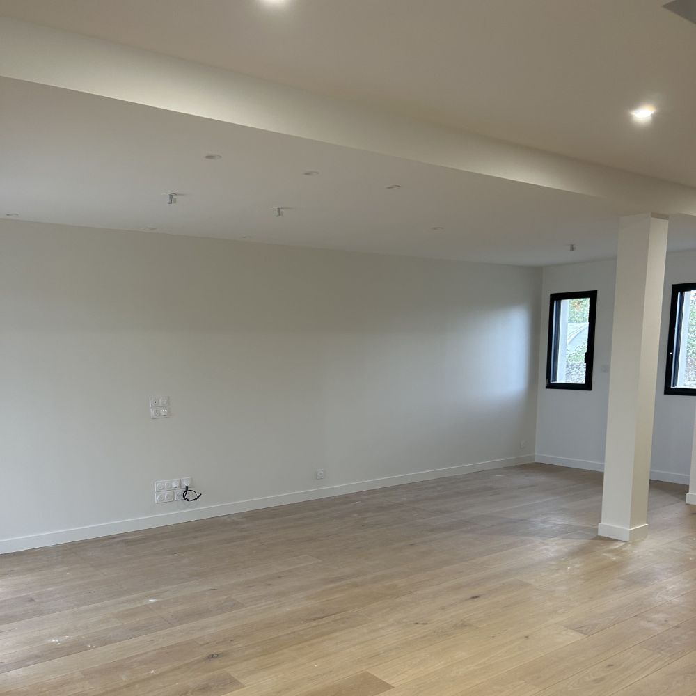 Sur ce chantier, nous avons réalisé l'intégralité des revêtements murs et plafonds en peinture dans une maison neuve à Sainte-Gemmes-sur-Loire près d'Angers.